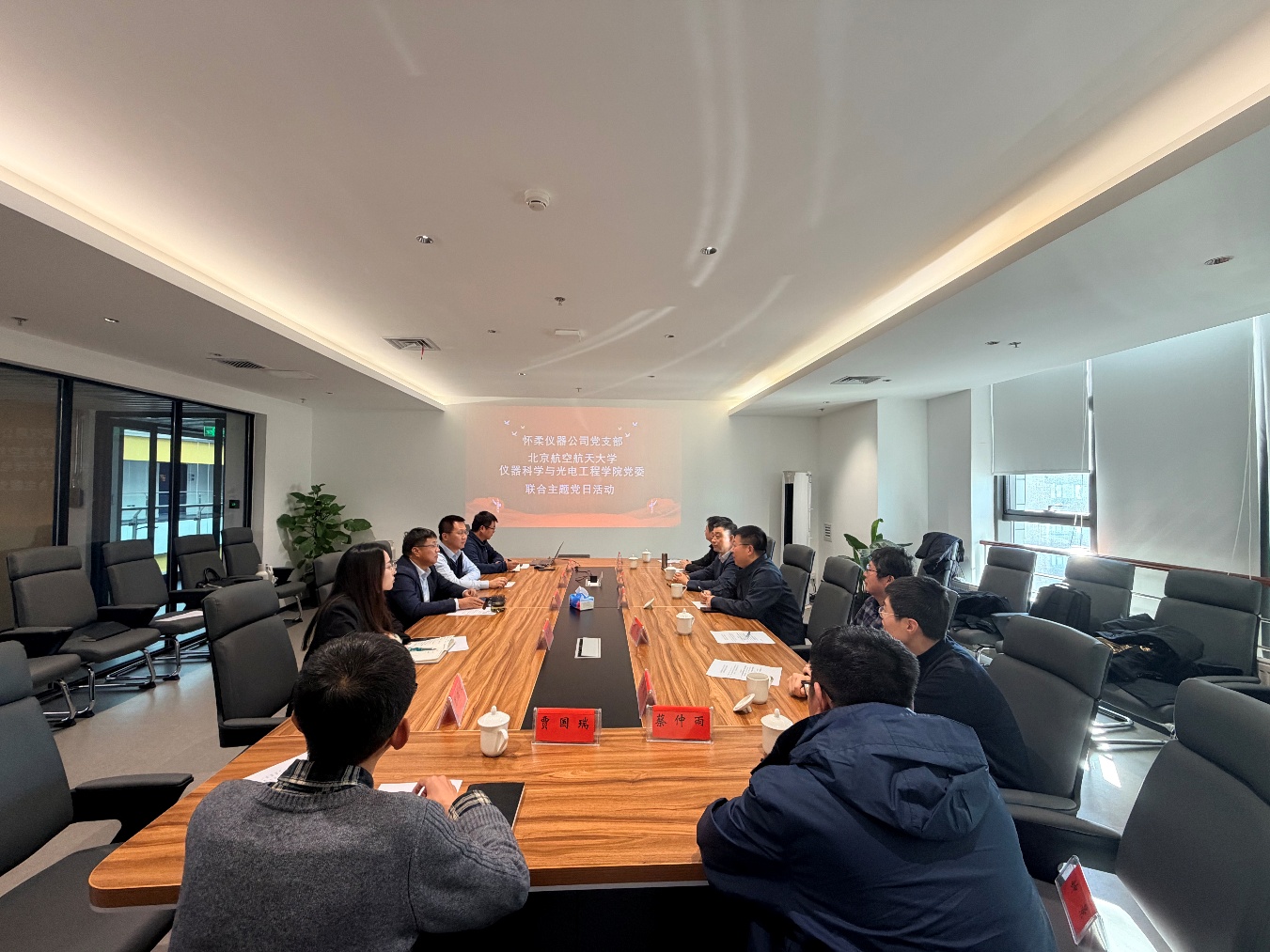 为深入贯彻落实党的二十届四中全会精神,推动高端科学仪器领域产学研协同创新,加强校企合作,深化产教融通,1月20日,北航仪器科学与光电工程学院党委组织教师代表,由学院党委书记雷晓锋带队,前往北京怀柔仪器和传感器有限公司开展联合主题党日活动,北京怀柔仪器和传感器有限公司董事长张鸣剑,总工程师刘海锋参加活动。